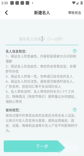3、填写姓名等相关信息后提交,等待审核。审核通过后,你即可使用该名人身份。