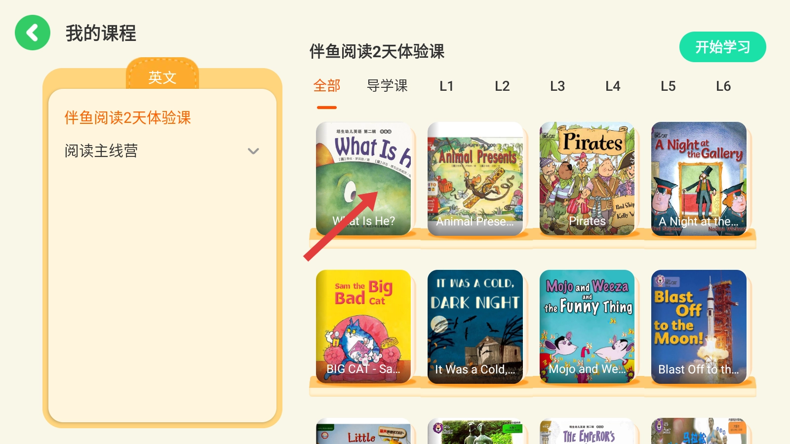 2、课程页【选对应课程】,进入【课程内容页。