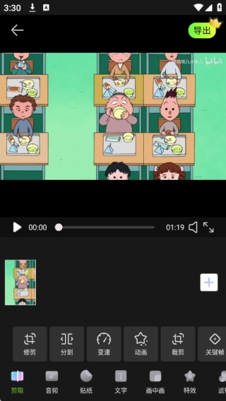 3、在进入到编辑页面中进行各类编辑操作,编辑的功能很多,可以自由进行剪辑;