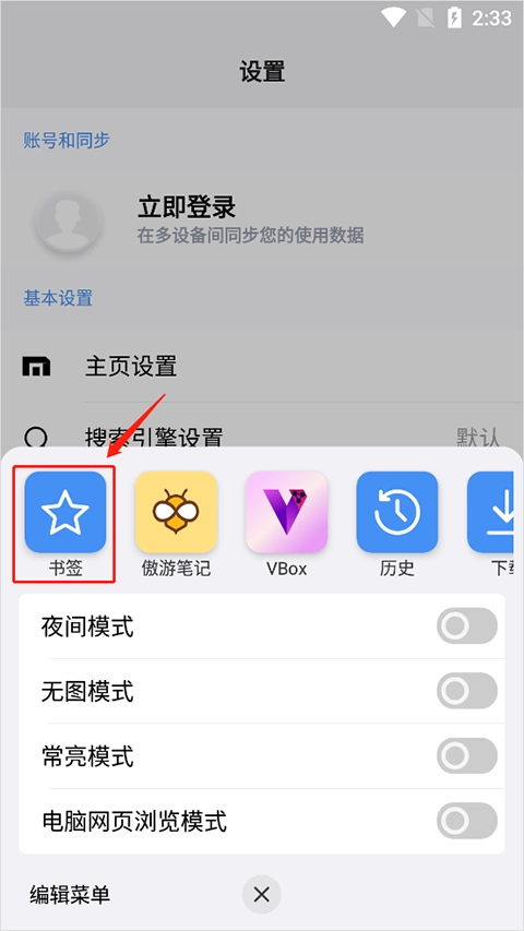 1. 第一步,点击页面上的“三”,接着进入书签。