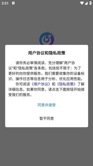 1、安装后打开软件,提示同意与否,点击同意进入;