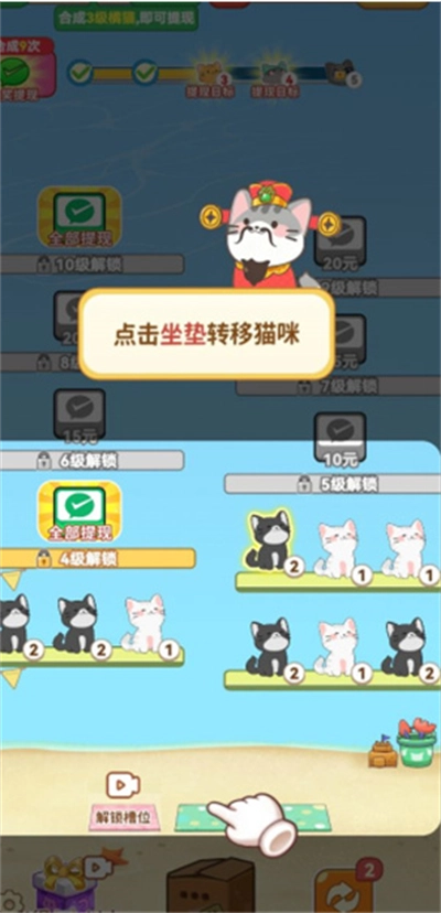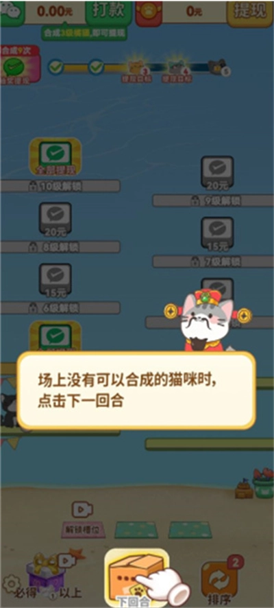 3、场上没有可合成的猫咪时,可以点击下一回合。