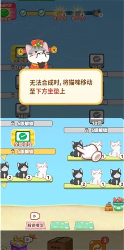 4、无法合成的时候,将猫咪移动到下方的坐垫上。