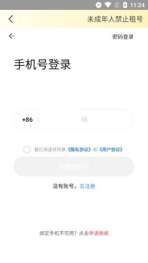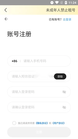在账号注册界面输入你的手机号和验证码,点击完成注册。