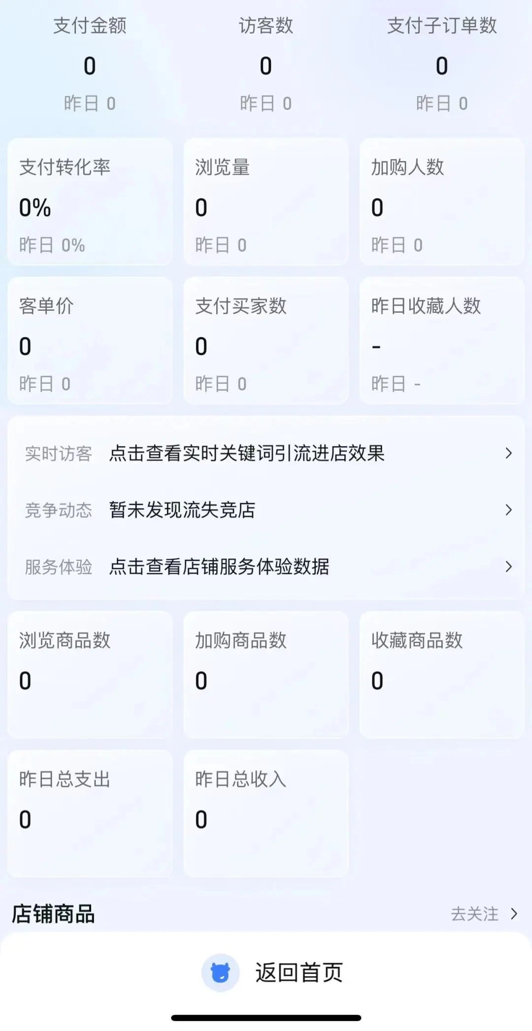2、访客数下面有个三角形符号,点开就是上图。这张图以后就是你每天经营情况的缩影:来了多少人进店,有多少人对你的产品感兴趣(收藏加购),最终卖出去多少钱等等,不过眼下你暂时可以不用知道。我们一步步来。