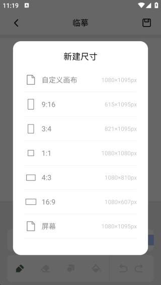 2、此外还能自己新建一个画布,可以根据想要的尺寸来进行选择,然后自己可以选择各种样式的彩笔在平面上面绘画咯;