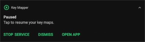 现在您的键映射应该已经开始工作了。要暂停/取消暂停所有键映射,请下拉通知托盘并点击键映射器通知,以在暂停和运行之间切换。