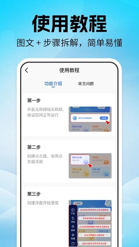 点击器的自动连点功能,助力用户轻松达成自动点击操作,实现便捷且高效的点击体验。无论是极速连点抢购心仪商品,还是进行其他自动点击任务,都不在话下。而且,详细的使用教程易于查看,操作十分简单。不仅如此,用户还能够对相关参数进行设置,便捷地录制所需脚本。只要开启悬浮窗,就能轻松使用,畅快点击。