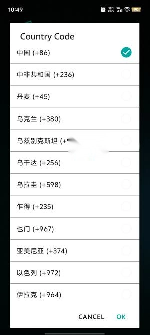 在注册界面选择你当前所在国家编码。