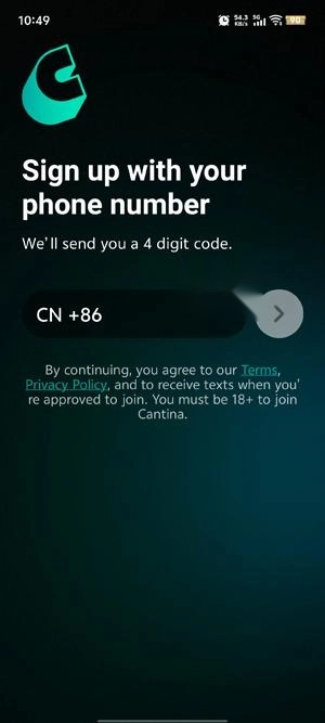 开启你的Cantina,点击进入注册功能。