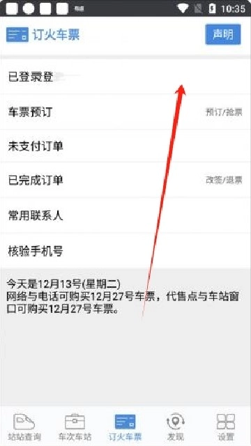 1. 点击预订火车票,登录12306账号,此时你会看到“登录”字样。