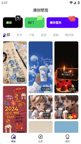 5、二次元、极简主义、治愈系等多元化的分类,确保每一位用户都能找到合意之作。