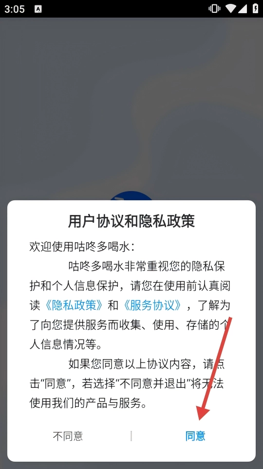 1. 点击协议弹窗中的【同意】,即可进入【咕咚多喝水】的首页,并解锁应用权限。