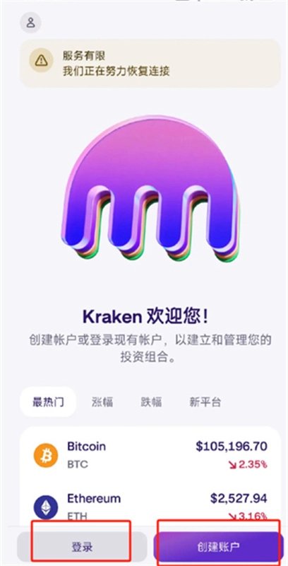 1. 开启已安装完成的kraken软件,若没有账户则进行注册,若已有账户,可直接登录。