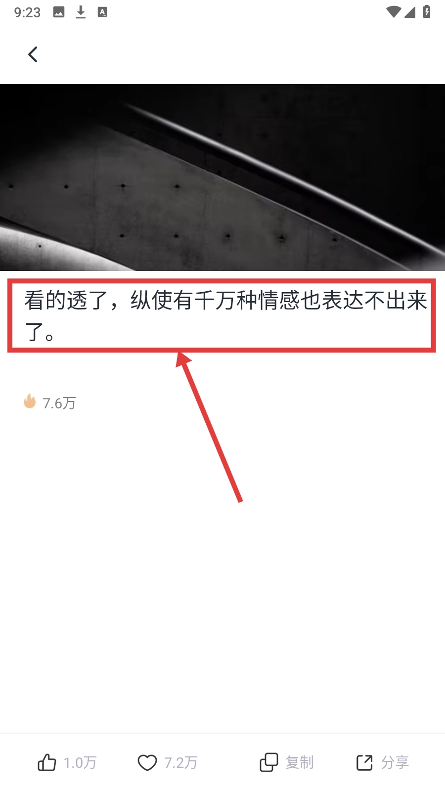 2、搜索页点击【情感emo】或者搜索关键字,查看相关文案内容。