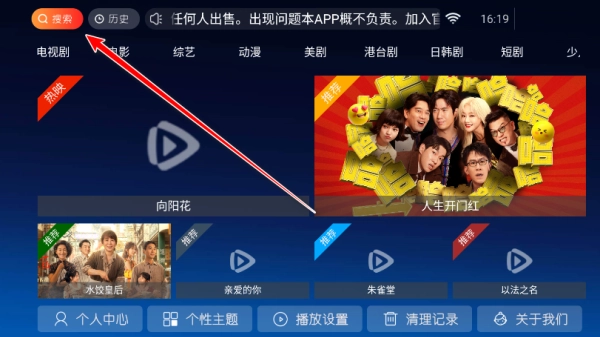 1、请在本站安装并打开最新版本的南果TV,点击搜索;