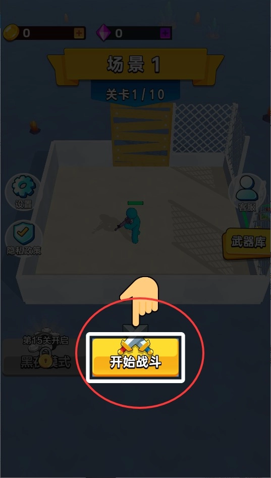 1. 当游戏启动完毕,点击开始按钮,角色便会自动现身于起点处,做好准备迎接第一波僵尸的挑战。