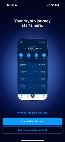 1. 开启crypto交易所,点击“创建新帐户”。