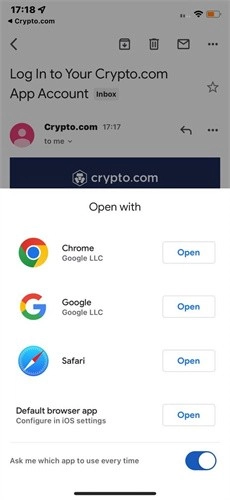 3、收到邮件后,点击链接,选择浏览器打开。