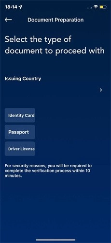 8、选择国家和的所需的身份证类型,然后上传自拍。