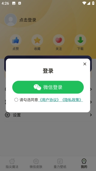 1. 完成安装后,进入【我的】页面,通过微信登录账号。