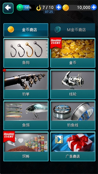 4、可以更换不同的鱼杆、鱼饵等道具。