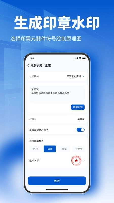 不仅如此,电子收据宝应用内为用户准备了丰富多样的行业收据模板,用户可随心挑选,实现标准收据的开具。生成印章水印后,能快捷添加到收据上。同时,软件还能实现多行业的数据记录与分析,方便用户进行管理。