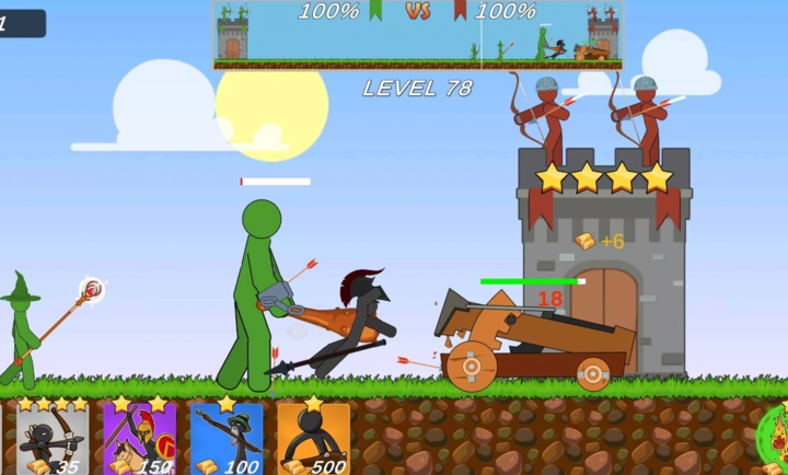 2、土地选择: 通过战略性选择塑造你的军队命运。 在这个独特的结合了棒人战斗、弹珠赛跑与ragdoll战斗的游戏中挑战自己。