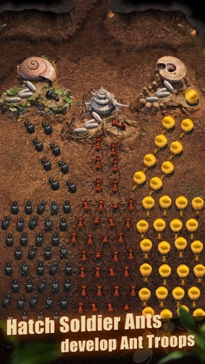 蚂蚁的数量决定了蚁族的兴盛。尽可能多地增加蚂蚁对于蚂蚁部落的发展和繁荣非常重要。与繁衍的蚁族一起抵御外敌,争夺资源,扩大势力!