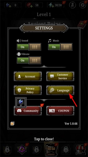 2、然后点击language选项来切换语言。