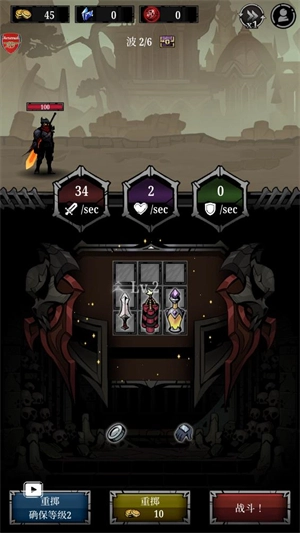 4、消灭所有敌人后就会进入休息阶段,点击重掷可以获得新的装备。