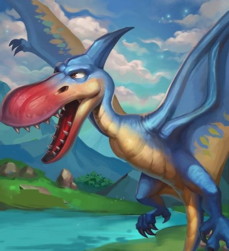 风神翼龙是一种翼手龙,生存于晚白垩纪时期,约8400万年前到6500万年前,风神翼龙翼展超过11米长,它是人类已知最大的飞行动物,在侏罗纪时代可是掌握制空权的,在游戏中,风神翼龙属于不朽品质,弯曲翅膀蹲坐的时候尽显霸气,长长的鸟喙啄食力量十分强大,时常能够猎食小型霸王龙当饭饭吃掉,新陈代谢异常快,它的移动速度略快于古神翼龙小队,生命力比古神翼龙小队大很多,属于平衡打野的必备恐龙。