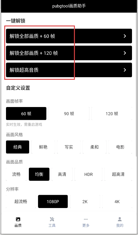 3、通过解锁手机的极限配置,PUBGTool让你的设备发挥出最佳性能,让画质全新升级。