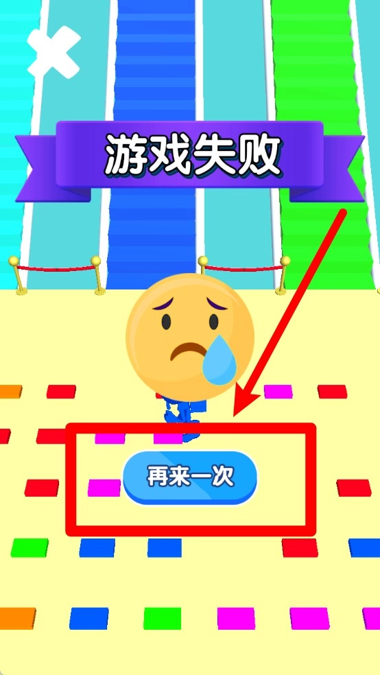3. 失败重试机制:若关卡未能完成,屏幕将弹出“游戏失败”的提示,此时点击“再来一次”按钮,即可马上重新发起挑战。