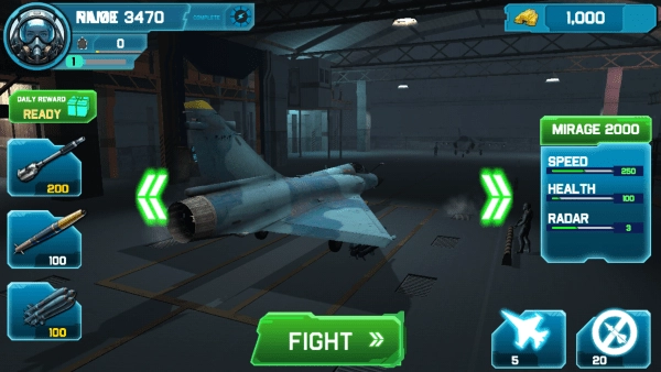 点击游戏后进入,你可以切换你的飞机与武器弹药。