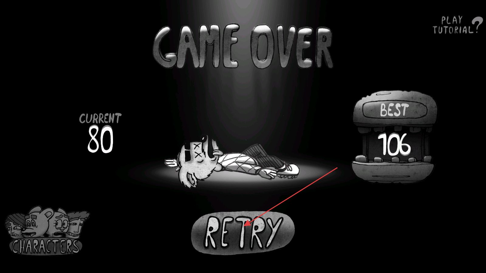 4、若失败,点击【RETRY】,重新挑战,突破更高分数。