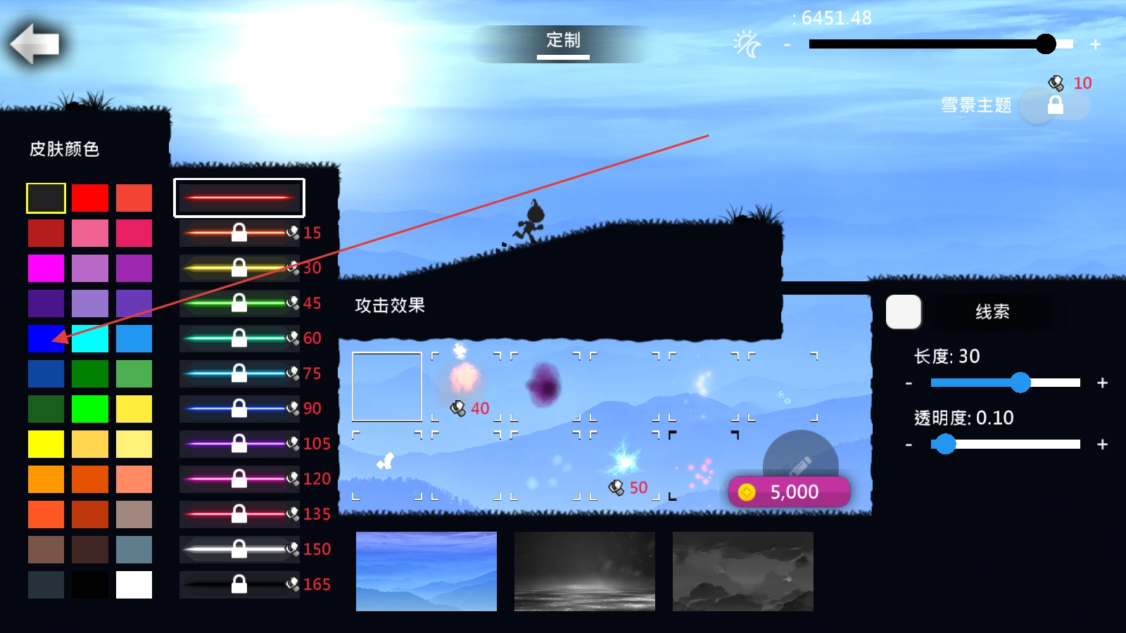2、进入定制界面,选择自己喜欢的皮肤颜色,搭配喜欢的攻击效果,打造专属外观。