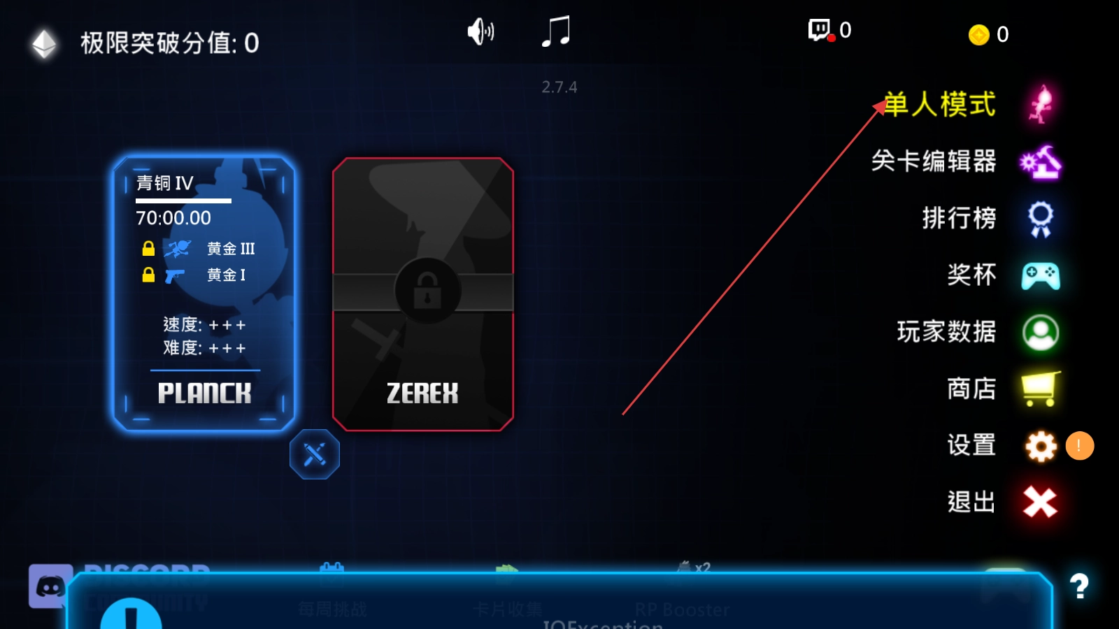 1、打开看一下极限突破,点击右侧【单人模式】开始挑战。