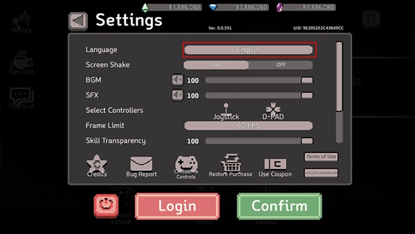 1、刚进入游戏时显示的是英文,点击屏幕上方的设置按钮。