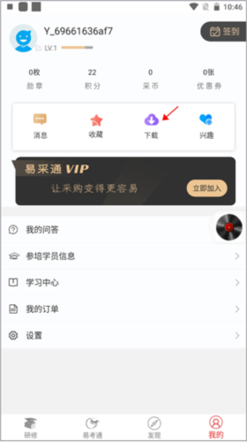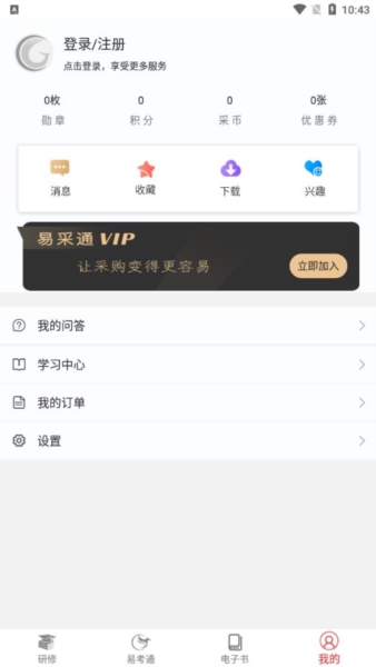 1、在易采通的“我的”功能界面中选择点击“”功能选项。