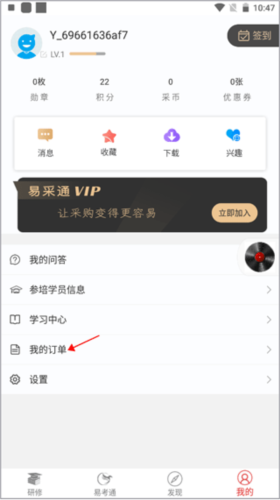 1、同样在易采通的我的功能界面选择点击“我的订单”功能。