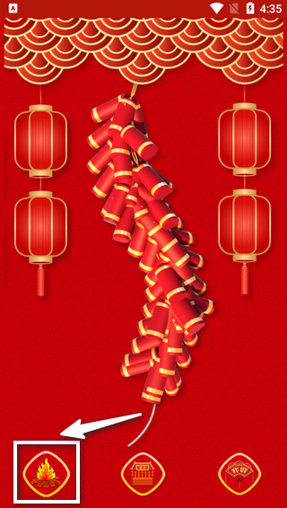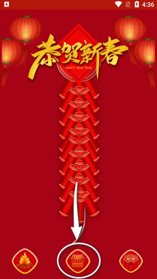 1、进入电子鞭炮模拟器,屏幕上挂着一串又大又粗的鞭炮,看着就很喜庆呢!