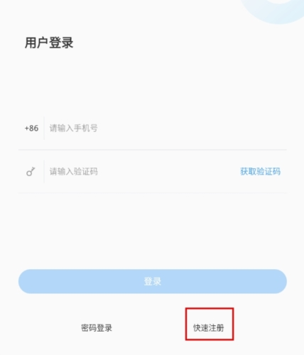 2、在【用户登录】页面中,有账号的可以直接输入账号,没有账号的点击【快速注册】按钮注册;