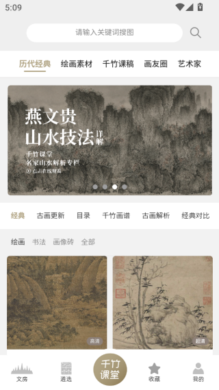 2、用户可以点击文房板块,提供了海量传统艺术素材及更多内容。