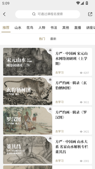 2、邀请了多位在传统中国画领域具有深厚造诣的名师入驻,为用户提供专业的教学和指导服务,无论是在线课程还是线下工作坊,都能直接与名师互动。