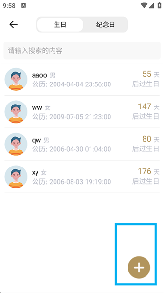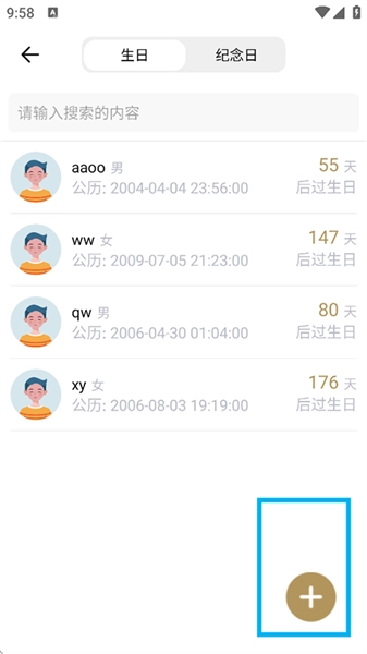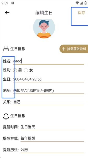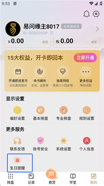 1、安装易问八字,打开【我的】界面中点击生日提醒。