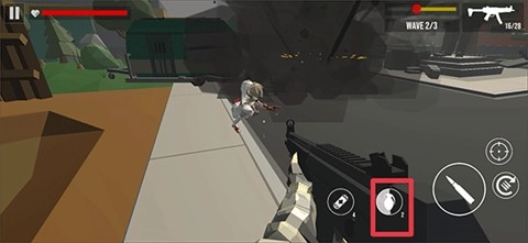 2、在游戏中通过左边屏幕移动来控制方向,右边子弹按钮则是发射弹药击杀僵尸