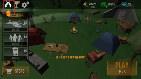 1、第一步,打开《僵尸启示录》游戏,接着点击游戏界面左上角的枪支图标。
