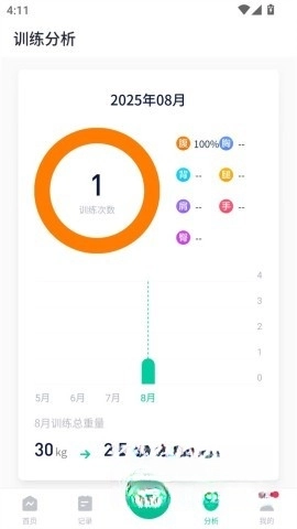 4、在“分析”功能中,你可以详细了解各个部位的训练情况,合理调整自己的健身策略。