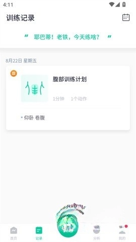 3、在“训练记录”页面,你可以很方便地查看每天的锻炼计划完成程度,激励自己不断前行。